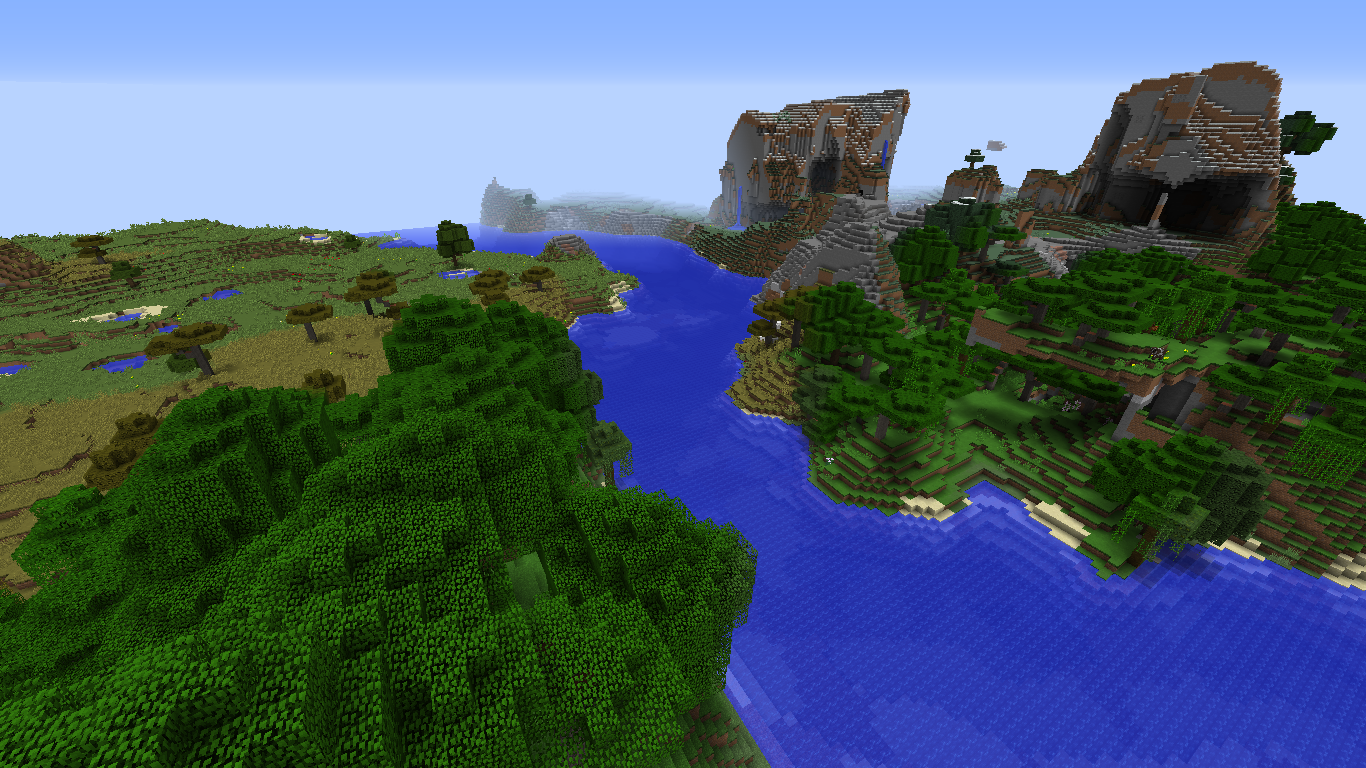 These rivers average 32 blocks across and are usually navigable from end to end, some going for thousands of blocks. They even flow into each other to form semi-realistic river systems.