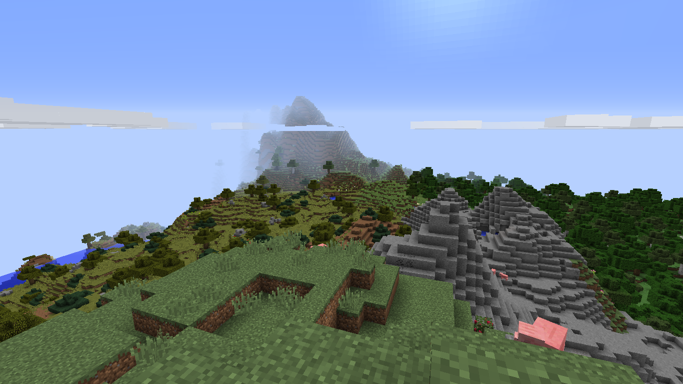 Standing on a small mountain I can see a big mountain in the distance. The new realistic world type has plenty of epic terrain and lots of variation, turning biomes into their own hill and mountain variants.