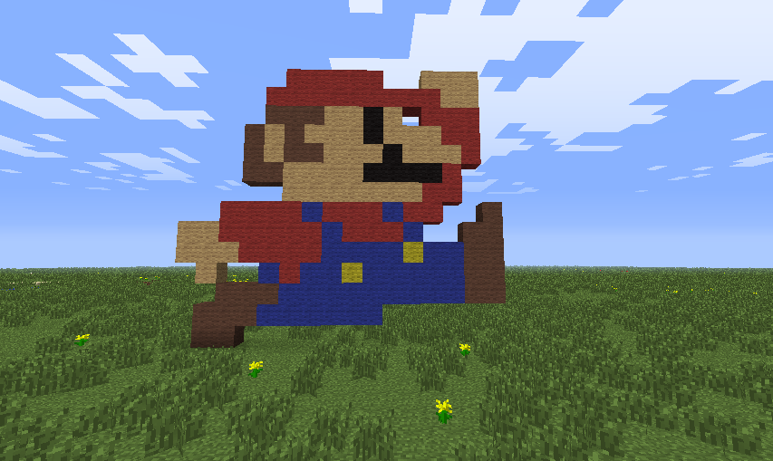 A mario pixel art made by SpartaBr, using the three new types of wool added to the game.