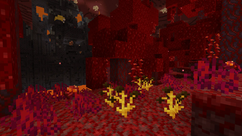 A patch of Cureflowers in a Crimson Forest, a Bastion Remnant is visible in view