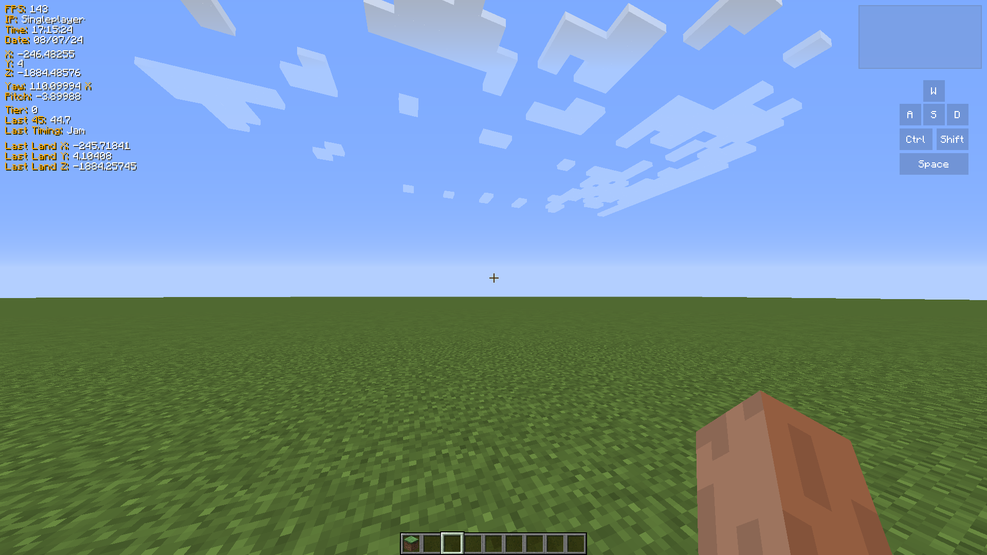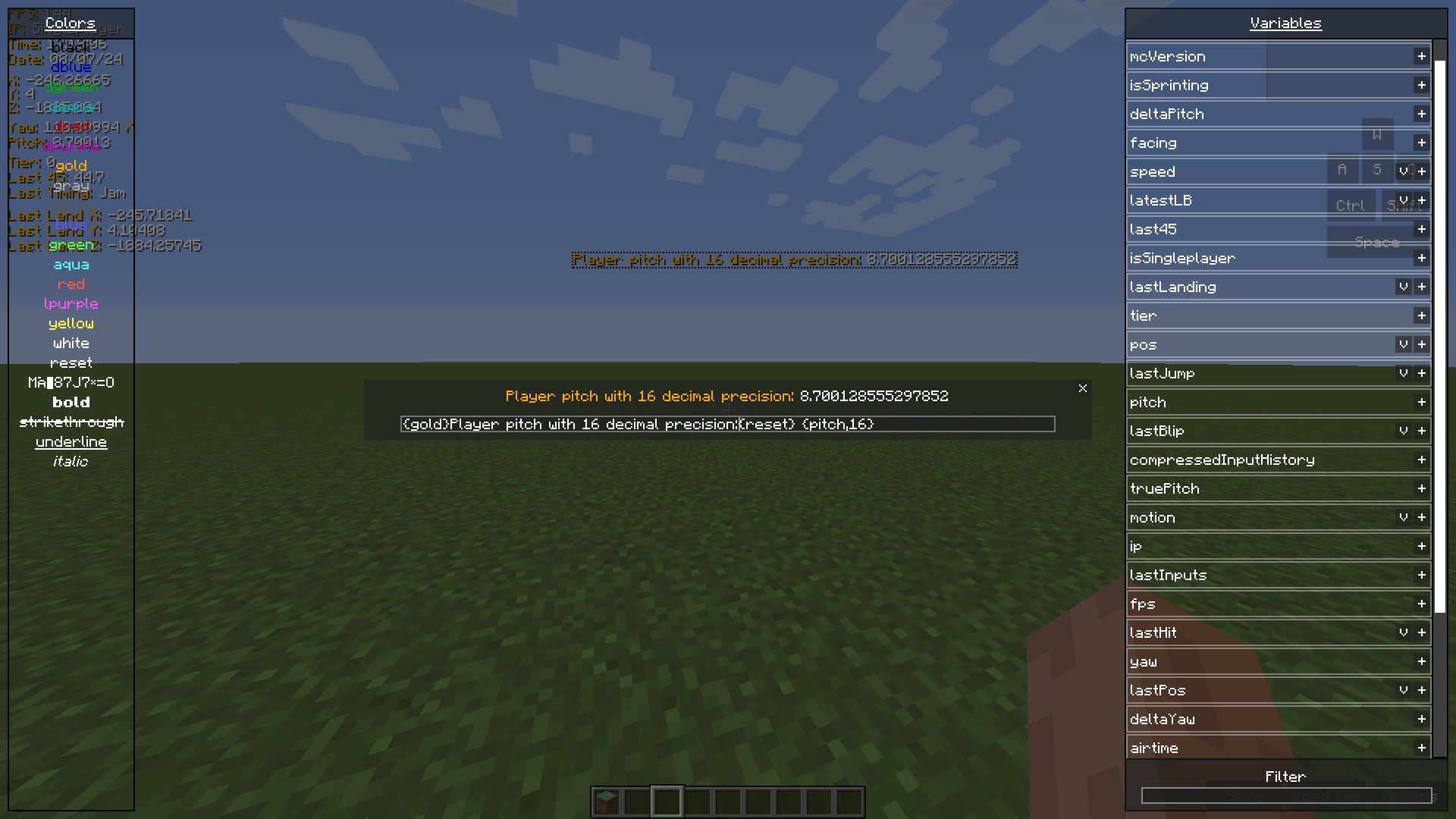 You can set any amount of landing blocks, which will be displayed ingame with a red overlay and list the offsets of your jump attempts in a GUI component, here in the top right corner of the screen