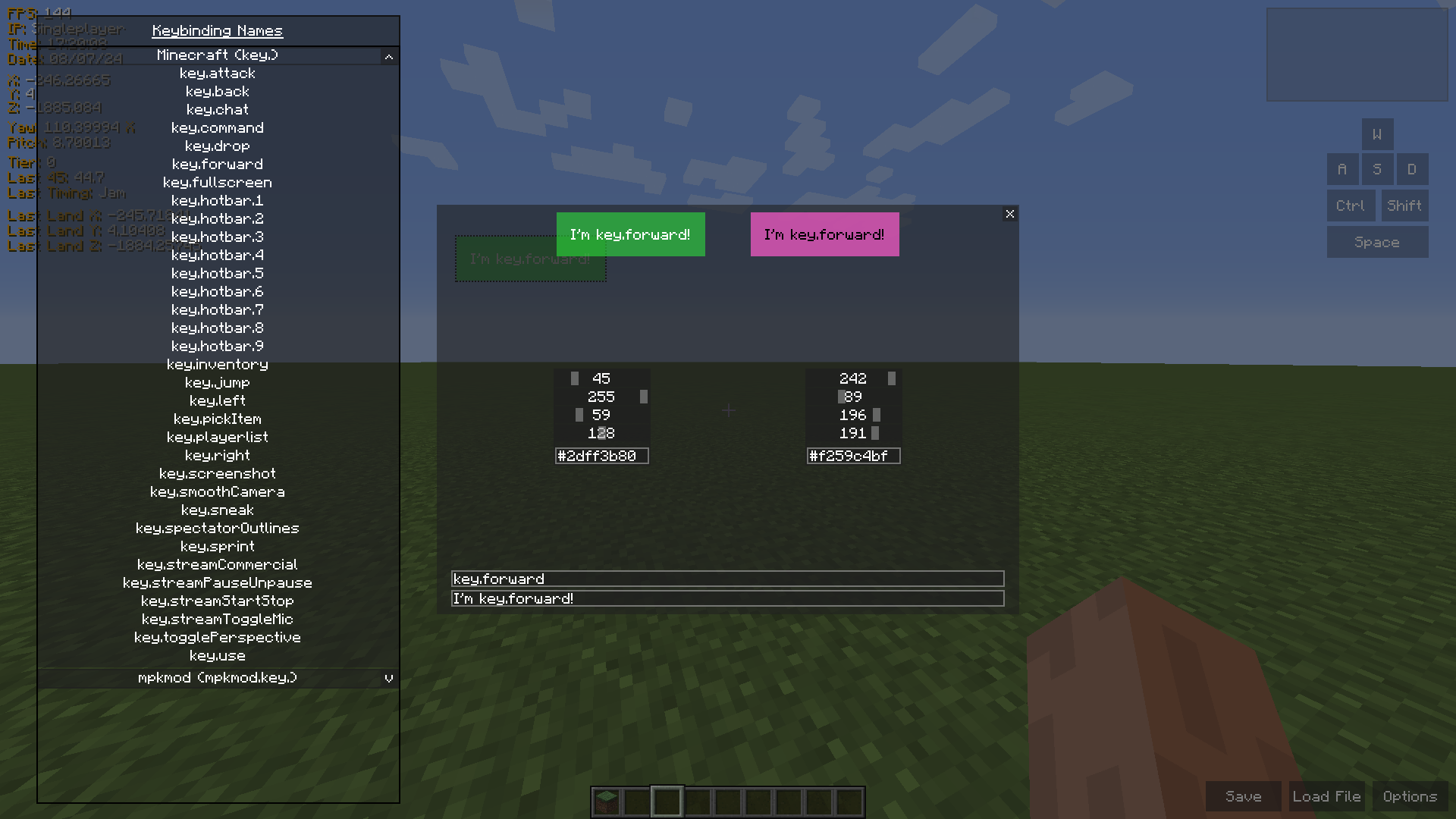 You can change color, size, text and the button that triggers keystrokes