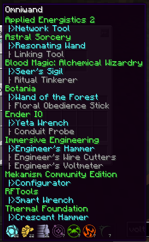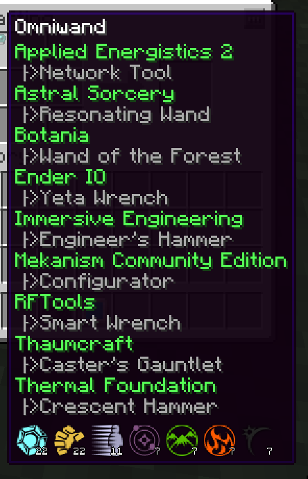 Extended tooltip showing all attached tools.