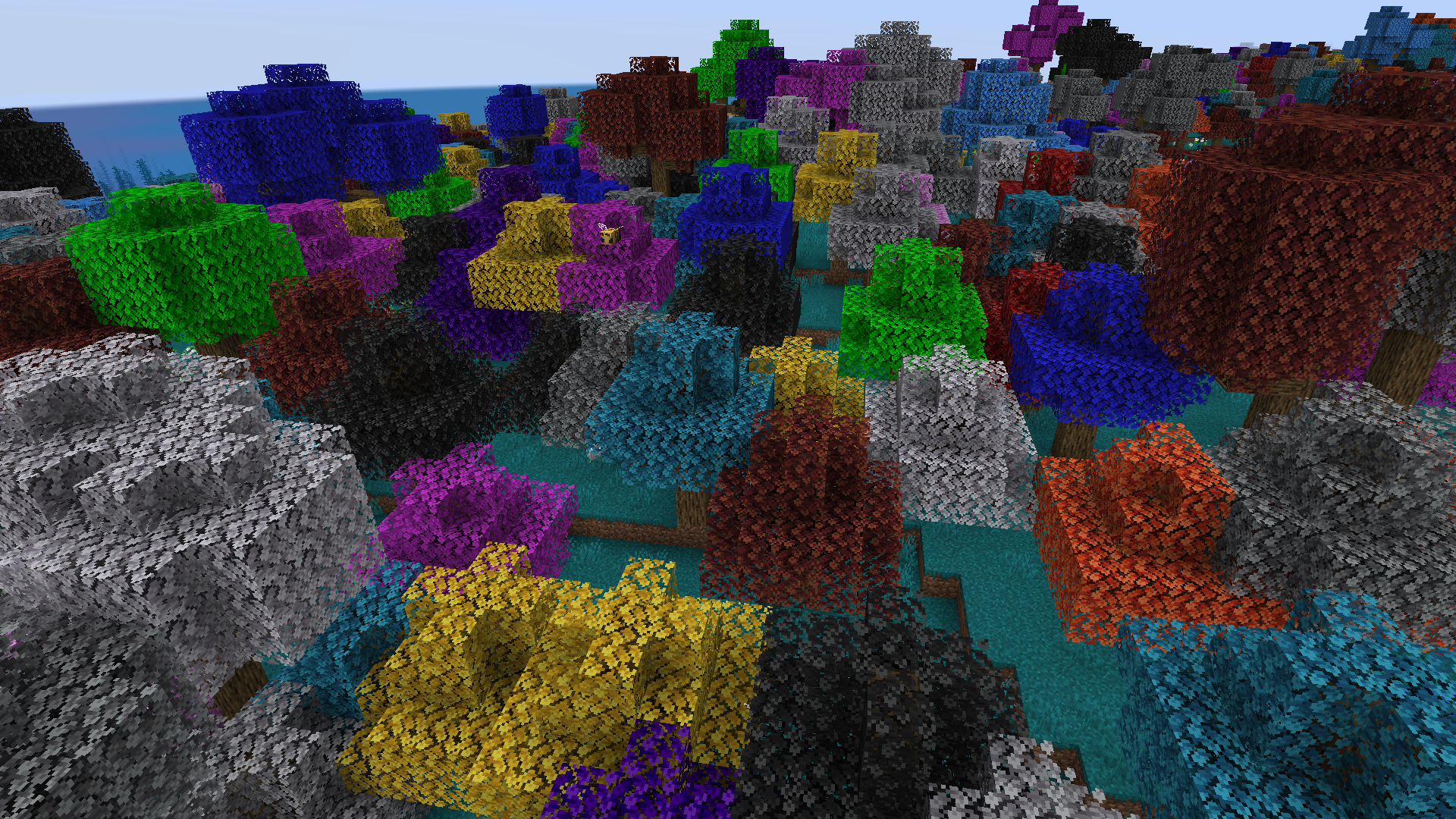 A dense forest, full of stained trees, even some that change colors. Reminiscent of Project Red's stained trees.