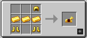 1. row: (empty) / (empty) / Golden Helmet; 2. row: Gold Ingot (x3); 3. row: Golden Boots / (empty) / Golden Boots