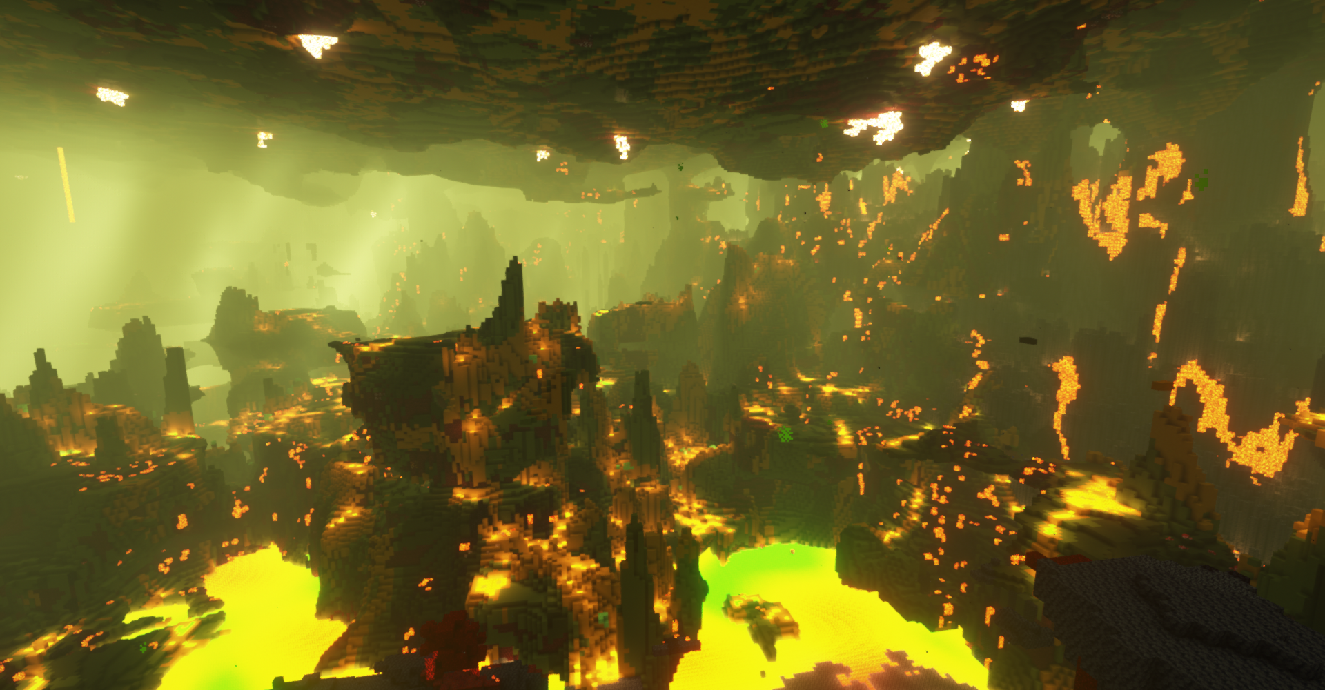 The merging of multiple Incendium biomes lava colors