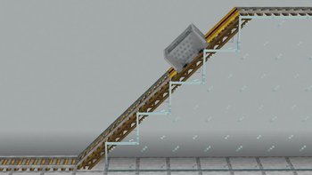 A minecart on diagonal rails