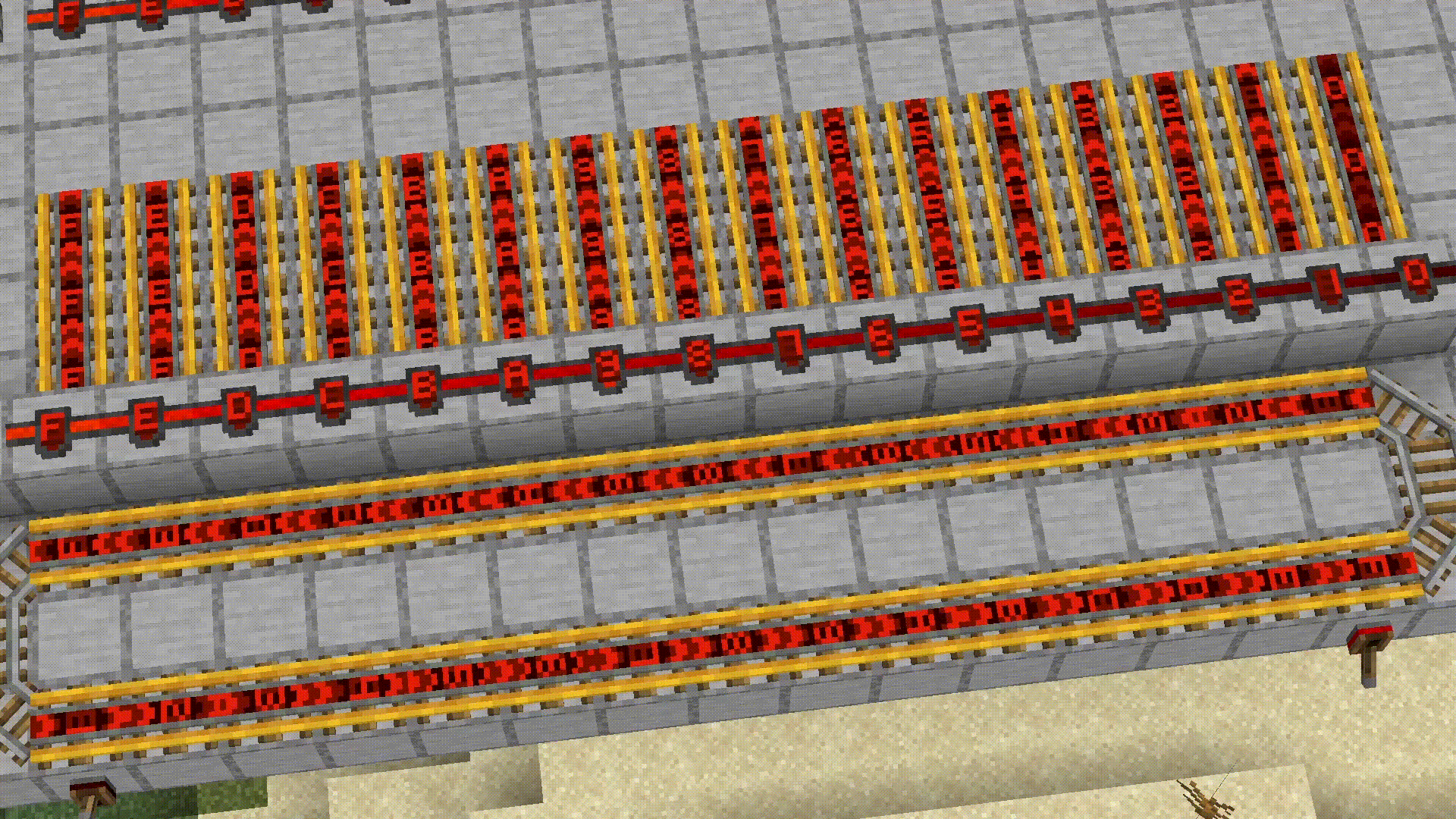 Power does not transfer from other rails to the rail under the assembler, so there are gaps between the power lines.