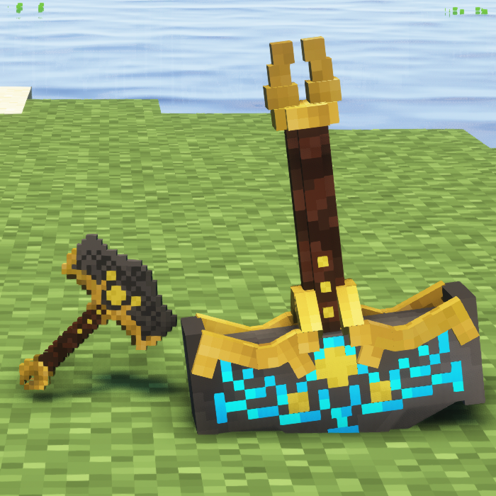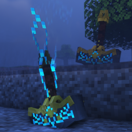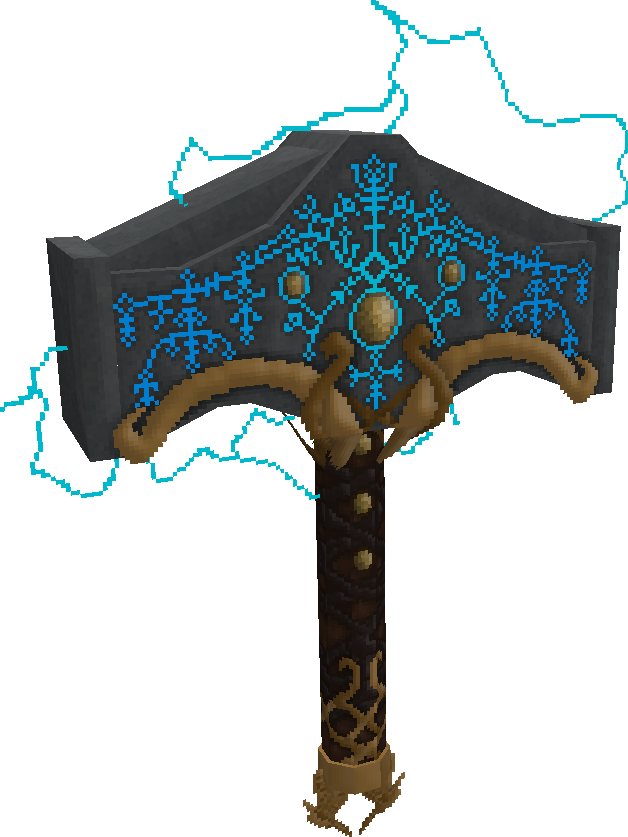 The 512x version of the Mjolnir Trident model. The lightning only appears when the item is dropped (or is in your inventory. It is animated just like it's runes).