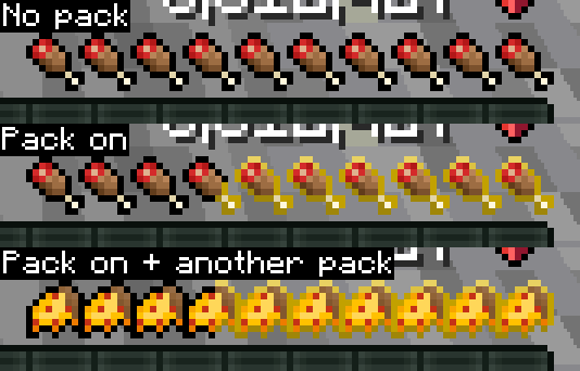 Use this order of packs with the hungerbar resourcepack of your choice (as long as the pack is for version 1.20.2 or higher)