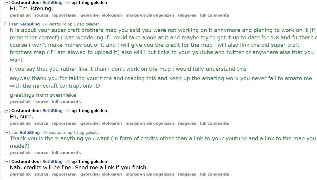 Here you can see that sethbling alowed me to work on super craft brothers and to upload it