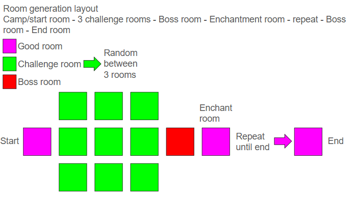 Основной принцип прост: чтобы открыть следующую дверь, необходимо уничтожить всех врагов в текущей комнате. Главной наградой за прохождение становится Меч Подземелья — оружие с прочностью железа, но с неограниченной долговечностью. Особую ценность ему придают специальные зачаровывающие комнаты, где можно получить уникальные комбинации заклинаний, такие как Острота и Небесная кара или даже Острота X уровня.